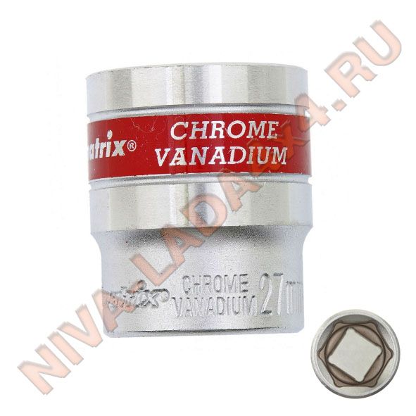 Головка торцевая, 27 мм, шестигранная, CrV, под квадрат 1/2, хромированная. MATRIX MASTER
