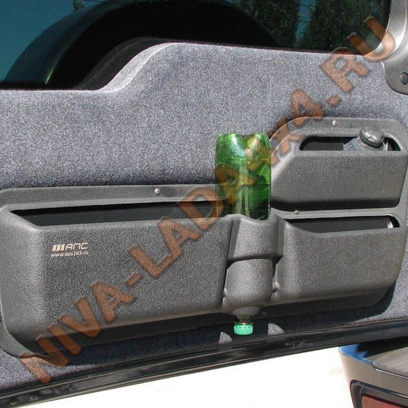 В центральной части кармана имеется цилиндрическая ниша для пластиковых бутылок объемом 1,5л.