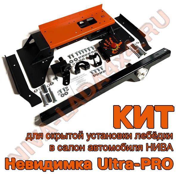 Кит-комплект деталей для скрытой установки лебёдки Невидимка Ultra-PRO предназначен для установки электромеханической лебёдки в салон за креслом водителя во все трёхдверные автомобили нива с штатным алюминиевым бампером или любым другим,имеющим аналогичные трубы крепления.