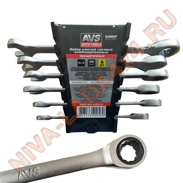 Набор ключей гаечных комбинированных трещоточных в пластике (8-17 мм) (6предметов) AVS K6N6P