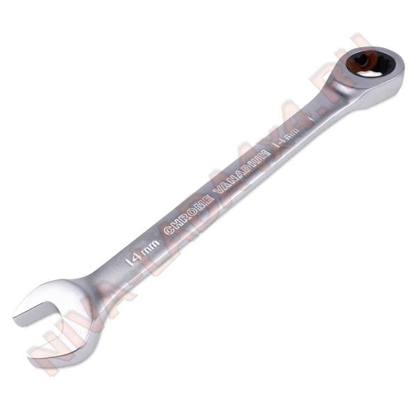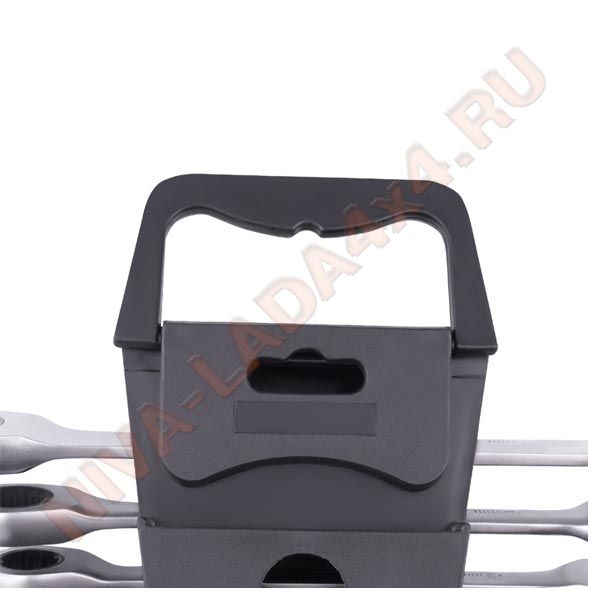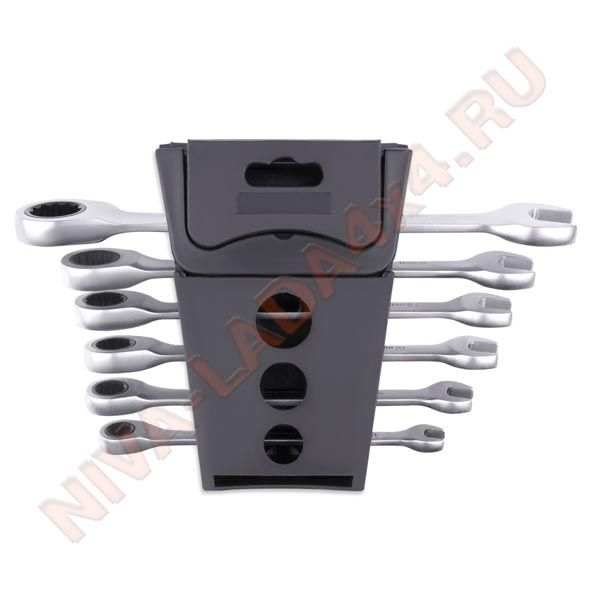 Набор комбинированных гаечных ключей из хромованадиевой стали с 72-зубцовым храповым механизмом в накидной части.