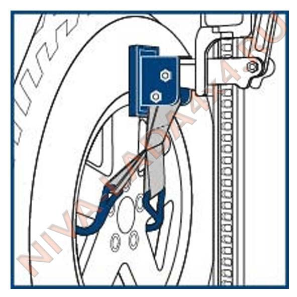 достаточно зацепить за колесный диск и зафиксировать на реечном домкрате.