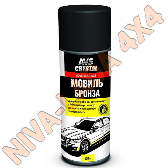 Мовиль- надежный консервант полостей кузова и деталей автомобиля. Используется для антикоррозионной защиты скрытых полостей кузова автомобиля (порогов, корпусов дверей, стоек, лонжеронов, пола салона, багажника и т.п.). При попадании на поверхность вытесняет влагу и образует толстую защитную плёнку. Практически не стекает с вертикальных поверхностей.Содержание металлической бронзы обеспечивает пленке дополнительную прочность за счёт образования армирующих связей, кроме этого, повышается теплостойкость и адгезия к поверхности
