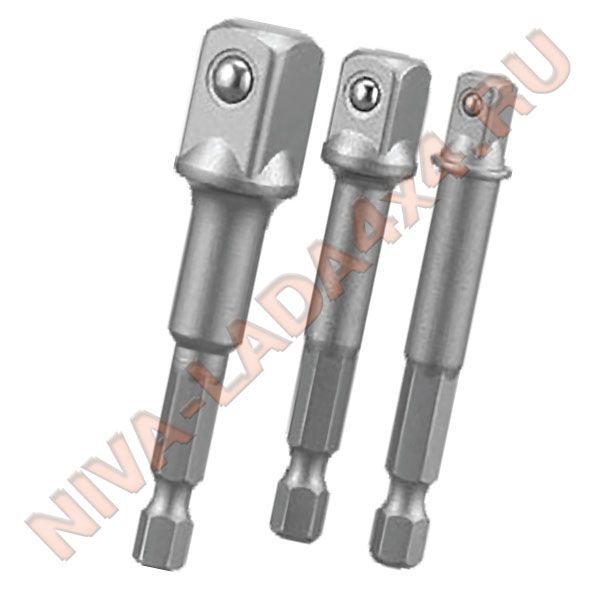 В наборе три адаптера с посадочным квадратом 1/4DR, 3/8DR, 1/2DR.