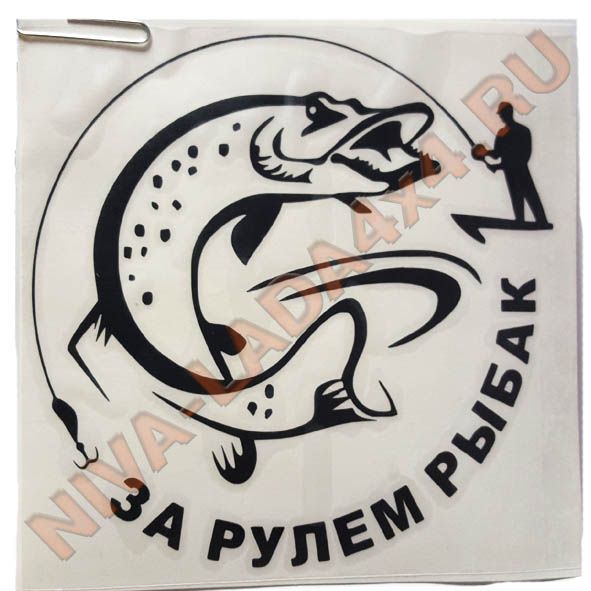Наклейка За рулем рыбак 15х15см черная плоттерная