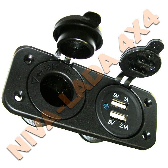 Панель 2в1 разъем USB-2 + гнездо прикуривателя, влагозащищенная