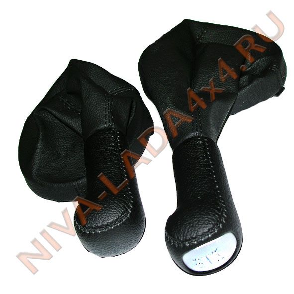 Рукоятка рычага управления КПП и Рукоятка рычага КР НИВА Шевроле серебристая вставка с чехлом, эко-кожа черный
