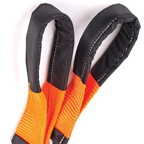 • В процессе эвакуации, когда выдергивающий автомобиль набирает скорость, стропа натягивается и накапливает кинетическую энергию. Как только стропа натянулась, она стремиться вернуться в свое первоначальное состояние и "отдает" накопленную энергию, что значительно помогает тянущему автомобилю. Таким образом эффективность эвакуации становится в разы выше, а рывок получается более мягким, щадящим, не травмирующим технику.