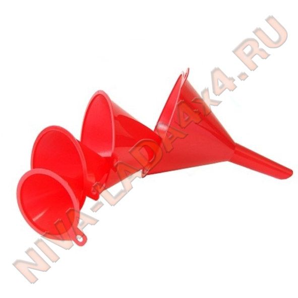 В комплекте 4 воронки с диаметром заливных горловин: 50, 75, 95, 115 мм.
