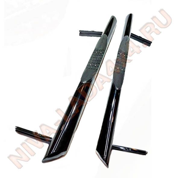 Защита порогов НИВА ТС-0366 с проступью, со скосом 2121; 21213; 21214 черный
