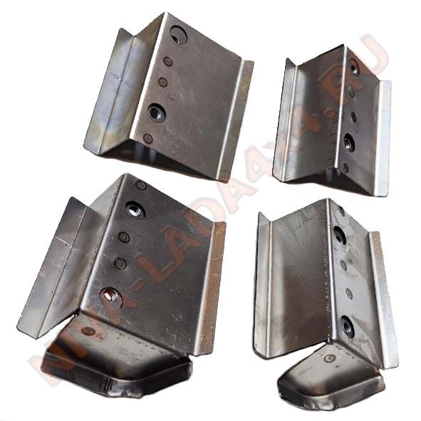 Жесть, кронштейны передних сидений НИВА 2121 ремонтные вставки опоры передние к-т 4 детали 2121-6812030; 2121-6812031; 2121-6810040; 2121-6810041